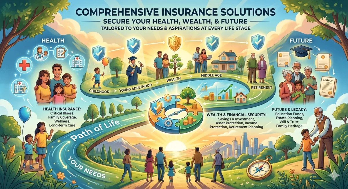 Discover comprehensive insurance solutions tailored to secure your health, wealth, and future, crafted meticulously to fit your needs and aspirations at every life stage.