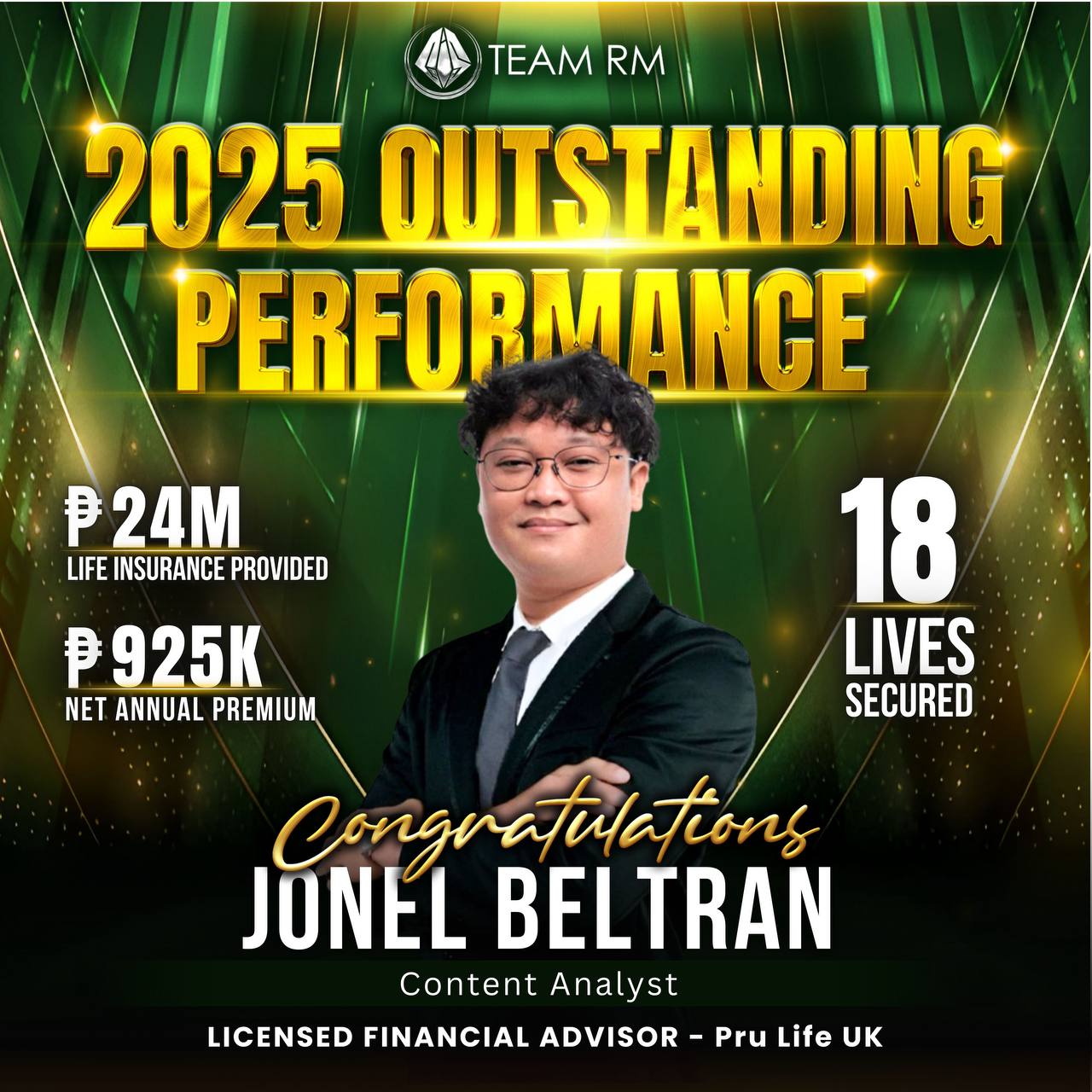 In a short span of time, I established myself as a high-performing and results-driven Financial Advisor. I am a multi-awarded agent, recognized as a Fast Starter’s Club (Gold) member, a recipient of the Rookie Special Award, and a proud member of the National Achiever’s Club. In 2025 alone, I produced 24 million in life insurance coverage and achieved 1 million in net annual premium, helping secure the financial future of numerous individuals and families. My dedication and impact in the industry have also earned me recognition in the Philippine Star newspaper—further solidifying my credibility and commitment to excellence in financial service.